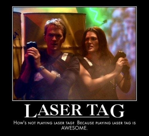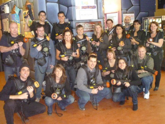 Cíntia Reinaux e o laser tag na confraternização do Canadá