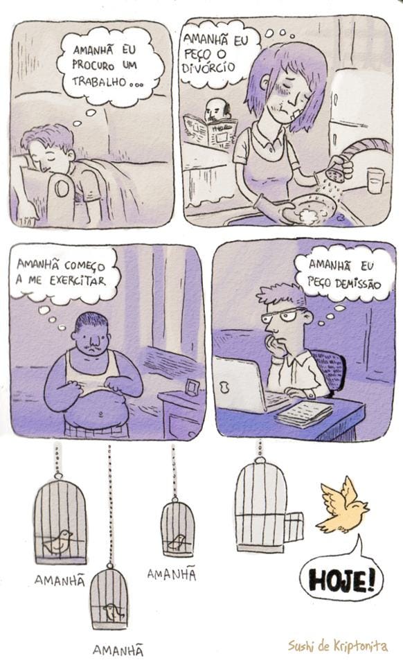 É nos fins de semana que costumamos tomar as decisões mais importantes (aquela dieta, curso de inglês, viagem para o exterior) para em seguida nos iludirmos de que “será a primeira coisa que farei na segunda”.