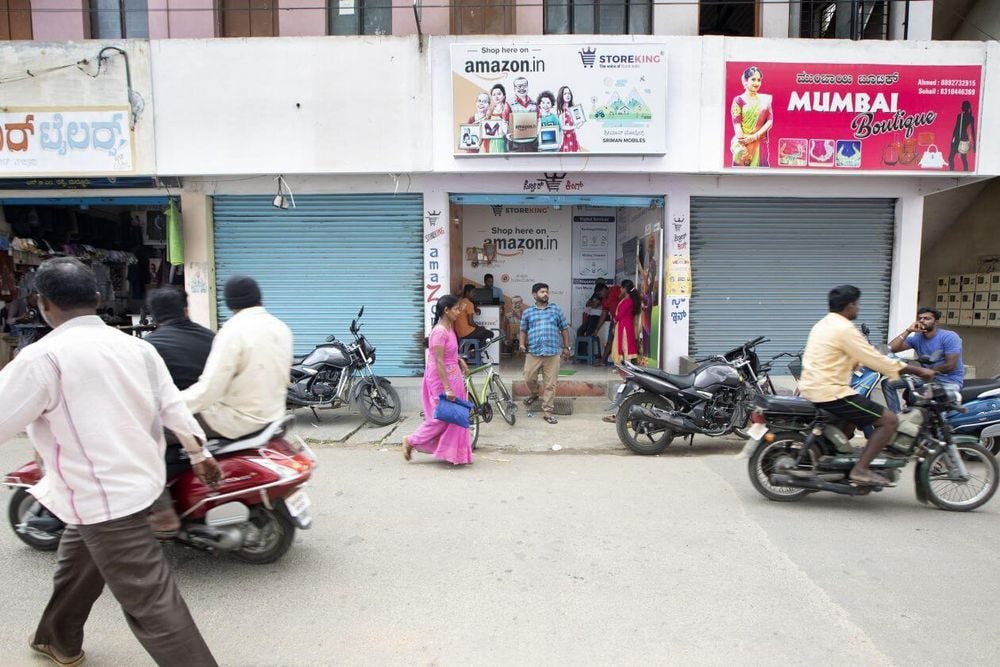Além disso, precisou fazer parcerias de entrega com empresas locais (uma vez que o serviço de entrega no país é notadamente ruim), bem como abrir lojas físicas em vilarejos longínquos, onde pessoas são contratadas para ensinar como fazer compras online. O site em si precisou de inúmeras adaptações, a começar pela difícil tradução, não apenas da linguagem em si, mas também dos símbolos: os indianos não entendiam a lupa como representação da busca, por exemplo.