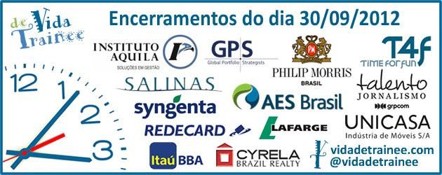 No próximo domingo, 30/09, diversas empresas encerrarão inscrições para os seus programas de trainee 2012 e trainee 2013.