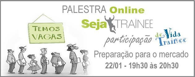 Uma delas é que hoje, 22/01, irei participar da palestra online da Seja Trainee, que terá como tema a Preparação para o Mercado.