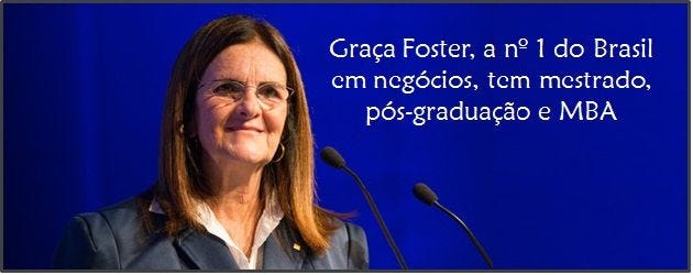 E o que dizer então de Graça Foster, a nº 1 do Brasil no mundo dos negócios? A presidente da Petrobrás tem mestrado em Engenharia Química, pós-graduação em Engenharia Nuclear e MBA em Economia.